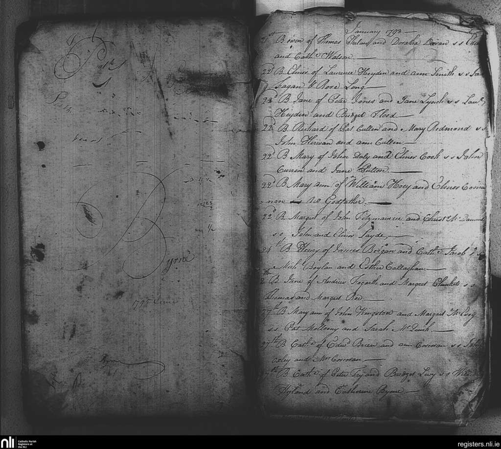St. Michael and John's, Dublin city; County of Dublin; Archdiocese of Dublin. Baptisms, Jan. 1793