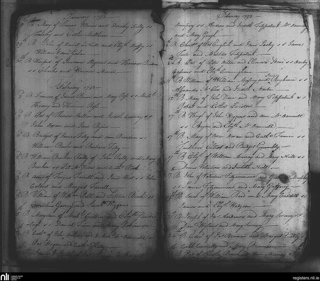 St. Michael and John's, Dublin city; County of Dublin; Archdiocese of Dublin. Baptisms, Jan. 1793 to Feb. 1793