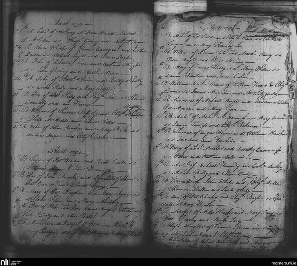 St. Michael and John's, Dublin city; County of Dublin; Archdiocese of Dublin. Baptisms, Mar. 1793 to Apr. 1793