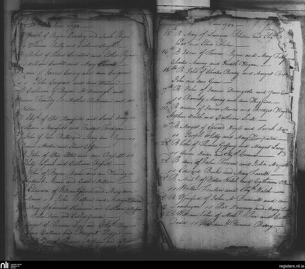 St. Michael and John's, Dublin city; County of Dublin; Archdiocese of Dublin. Baptisms, June 1793