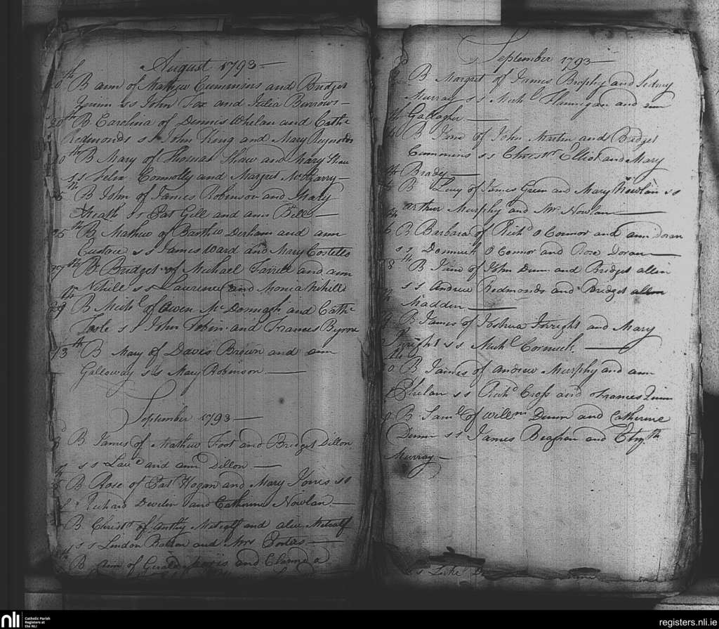 St. Michael and John's, Dublin city; County of Dublin; Archdiocese of Dublin. Baptisms, Aug. 1793 to Sep. 1793