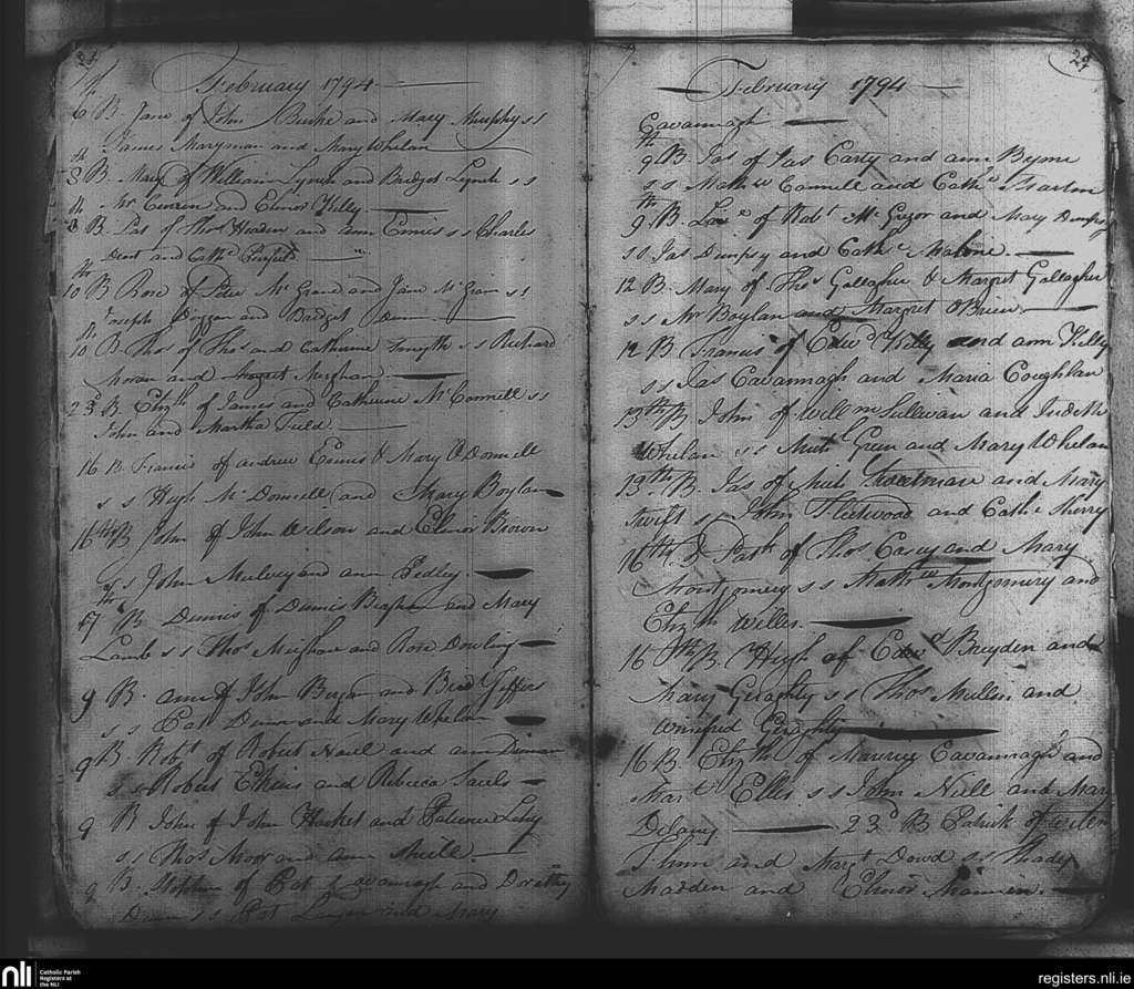 St. Michael and John's, Dublin city; County of Dublin; Archdiocese of Dublin. Baptisms, Feb. 1794