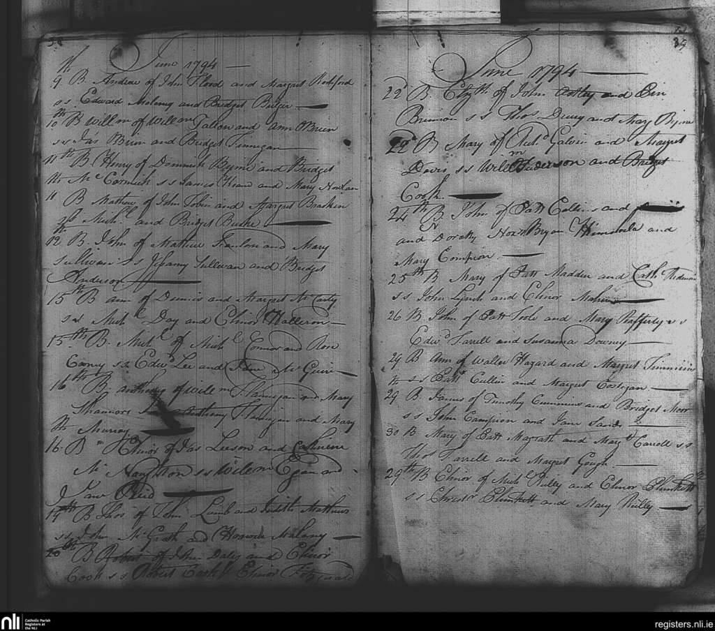 St. Michael and John's, Dublin city; County of Dublin; Archdiocese of Dublin. Baptisms, June 1794