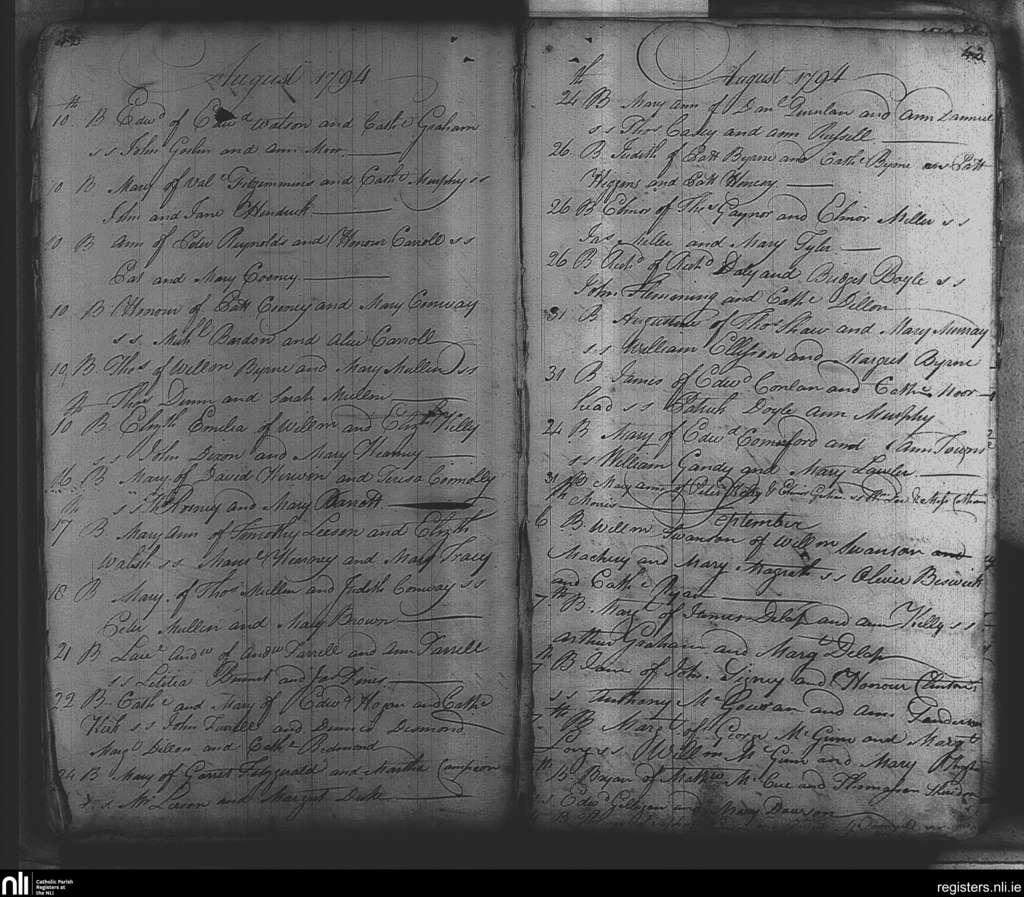 St. Michael and John's, Dublin city; County of Dublin; Archdiocese of Dublin. Baptisms, Aug. 1794