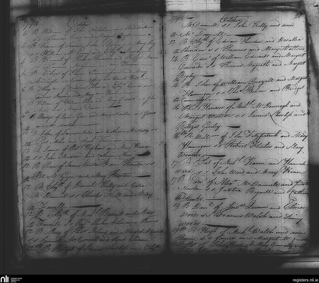 St. Michael and John's, Dublin city; County of Dublin; Archdiocese of Dublin. Baptisms, Oct. 1794