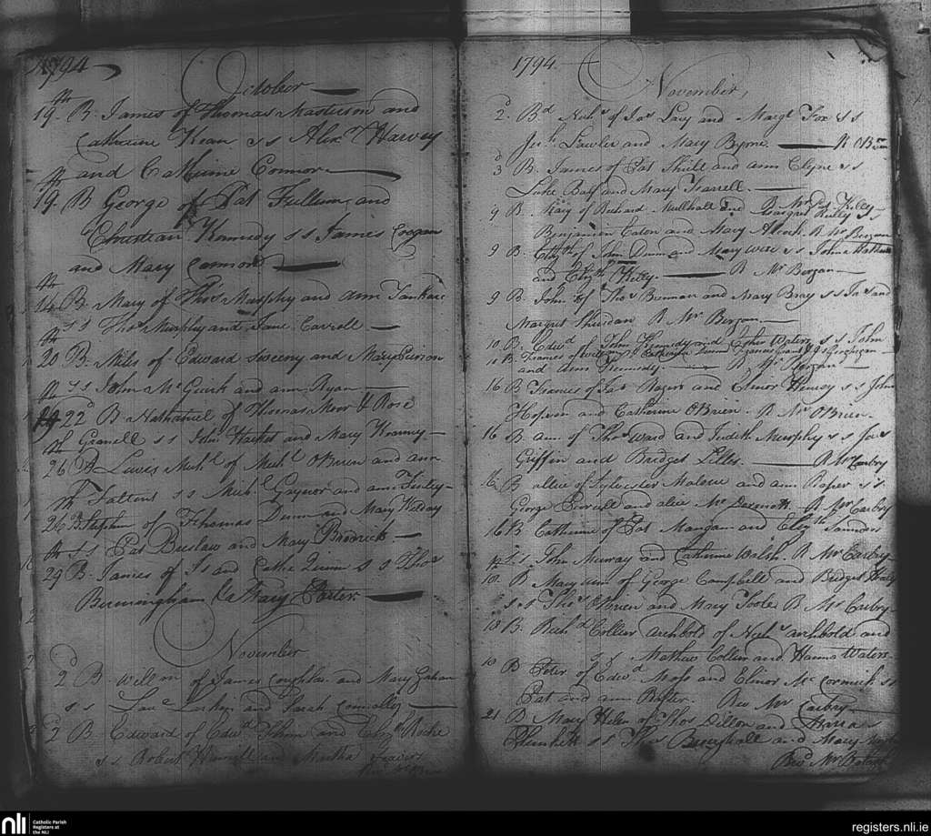 St. Michael and John's, Dublin city; County of Dublin; Archdiocese of Dublin. Baptisms, Oct. 1794 to Nov. 1794