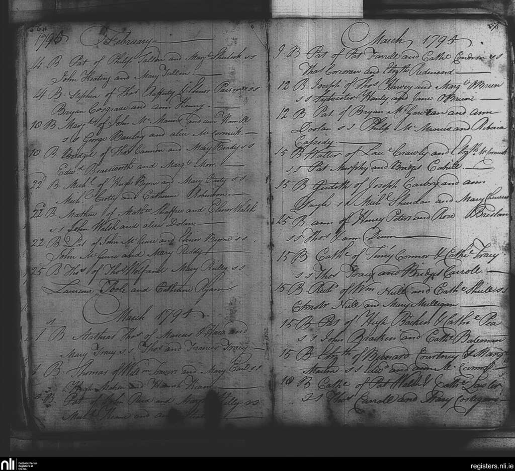 St. Michael and John's, Dublin city; County of Dublin; Archdiocese of Dublin. Baptisms, Feb. 1795 to Mar. 1795