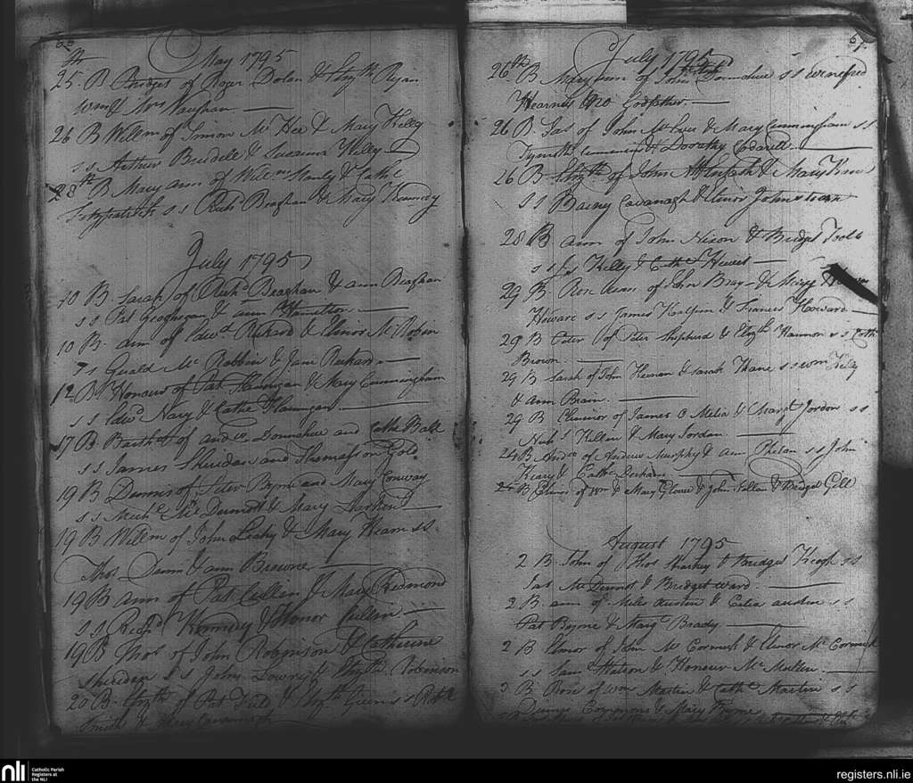 St. Michael and John's, Dublin city; County of Dublin; Archdiocese of Dublin. Baptisms, May 1795 to Aug. 1795