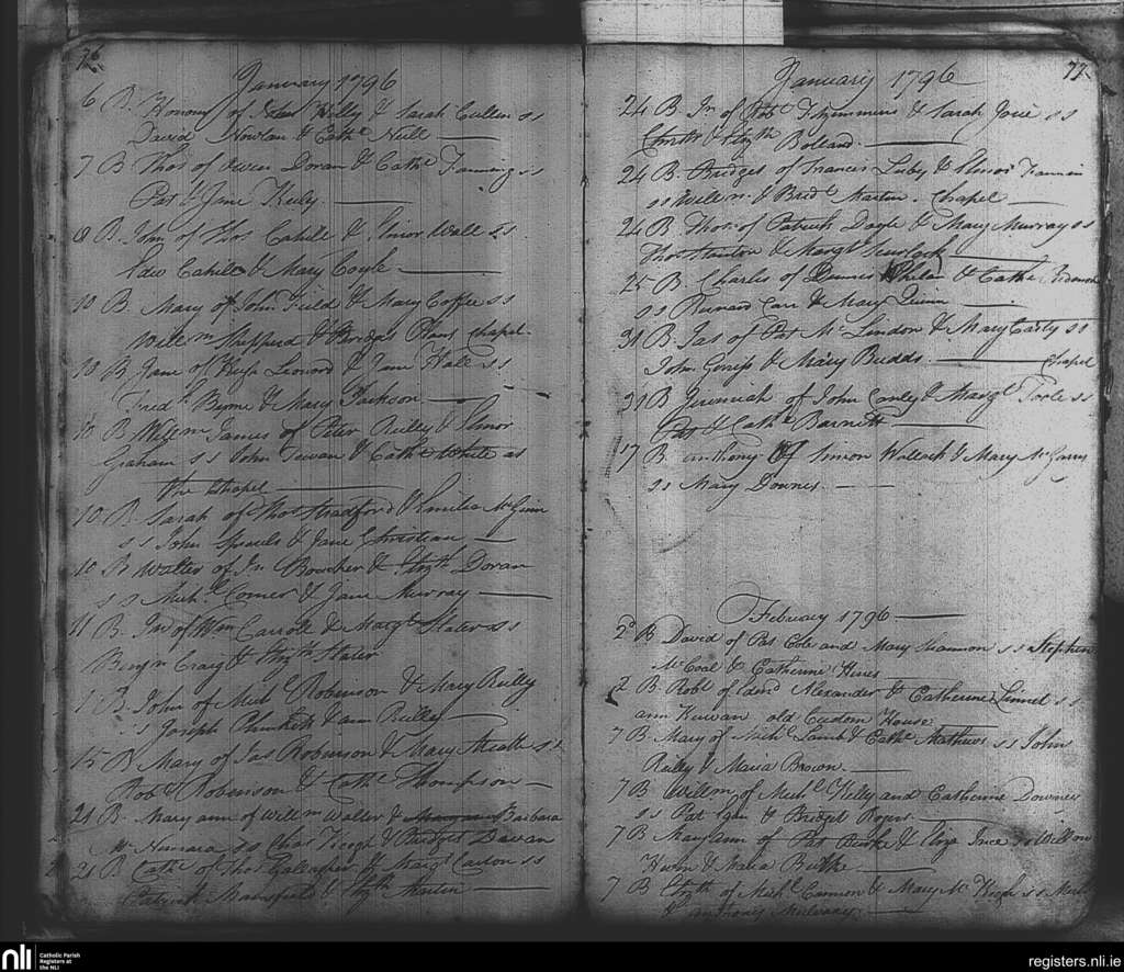St. Michael and John's, Dublin city; County of Dublin; Archdiocese of Dublin. Baptisms, Jan. 1796 to Feb. 1796