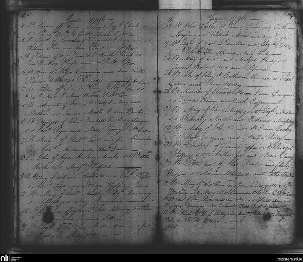 St. Michael and John's, Dublin city; County of Dublin; Archdiocese of Dublin. Baptisms, June 1796