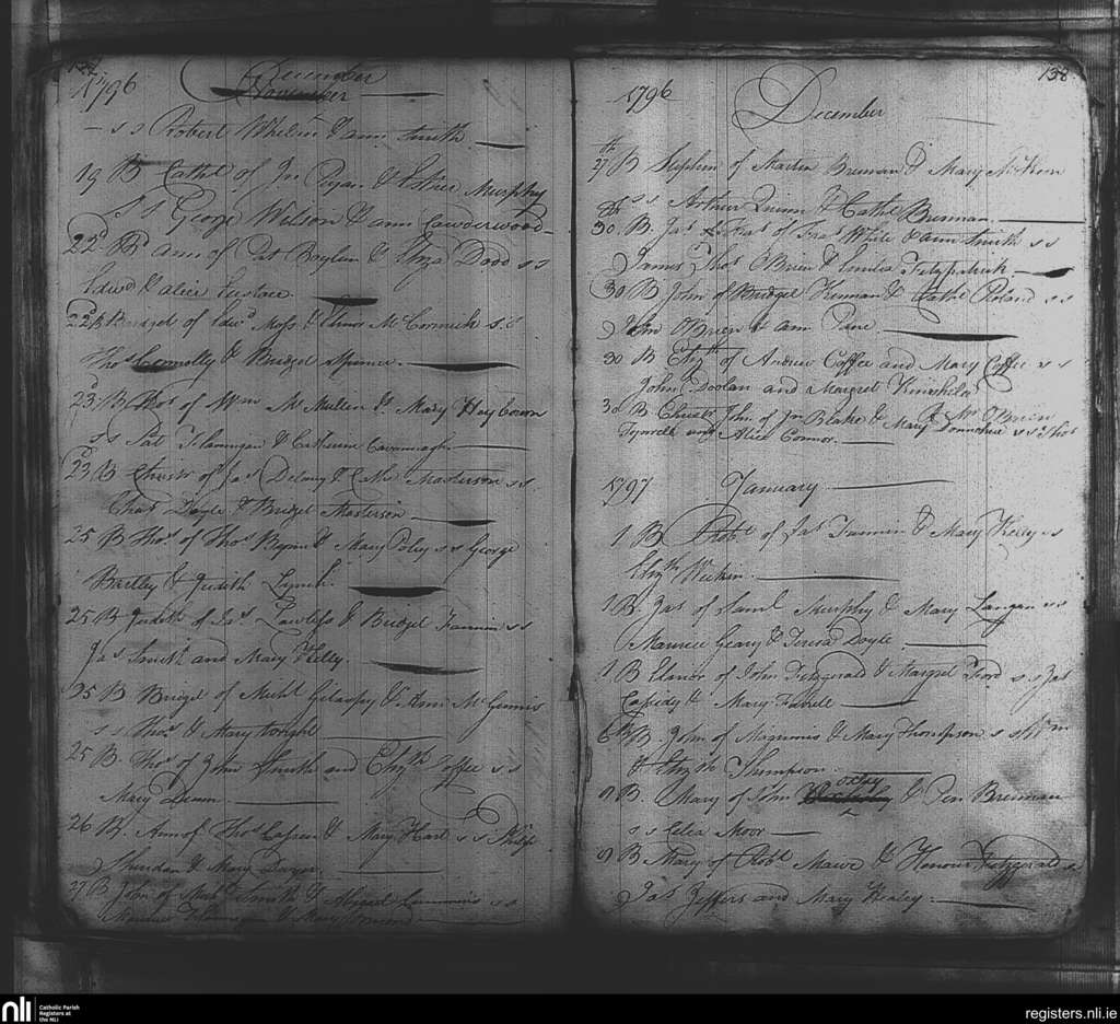 St. Michael and John's, Dublin city; County of Dublin; Archdiocese of Dublin. Baptisms, Dec. 1796 to Jan. 1797