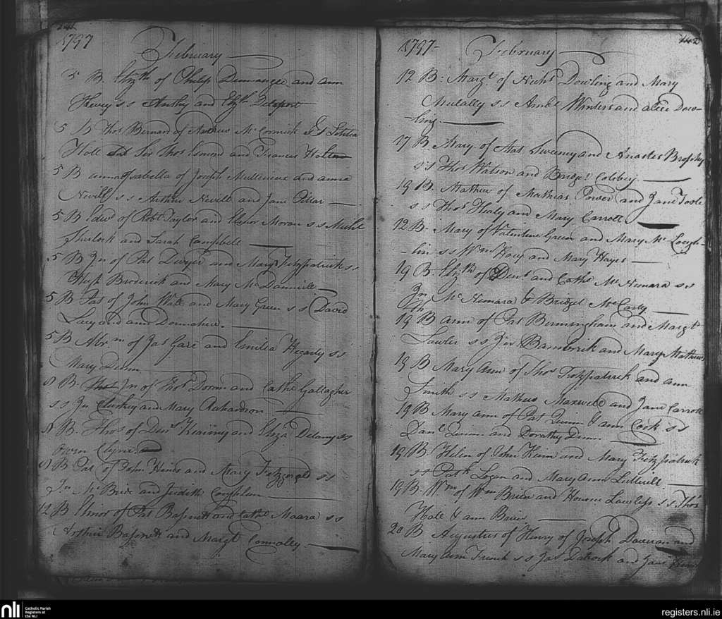 St. Michael and John's, Dublin city; County of Dublin; Archdiocese of Dublin. Baptisms, Feb. 1797