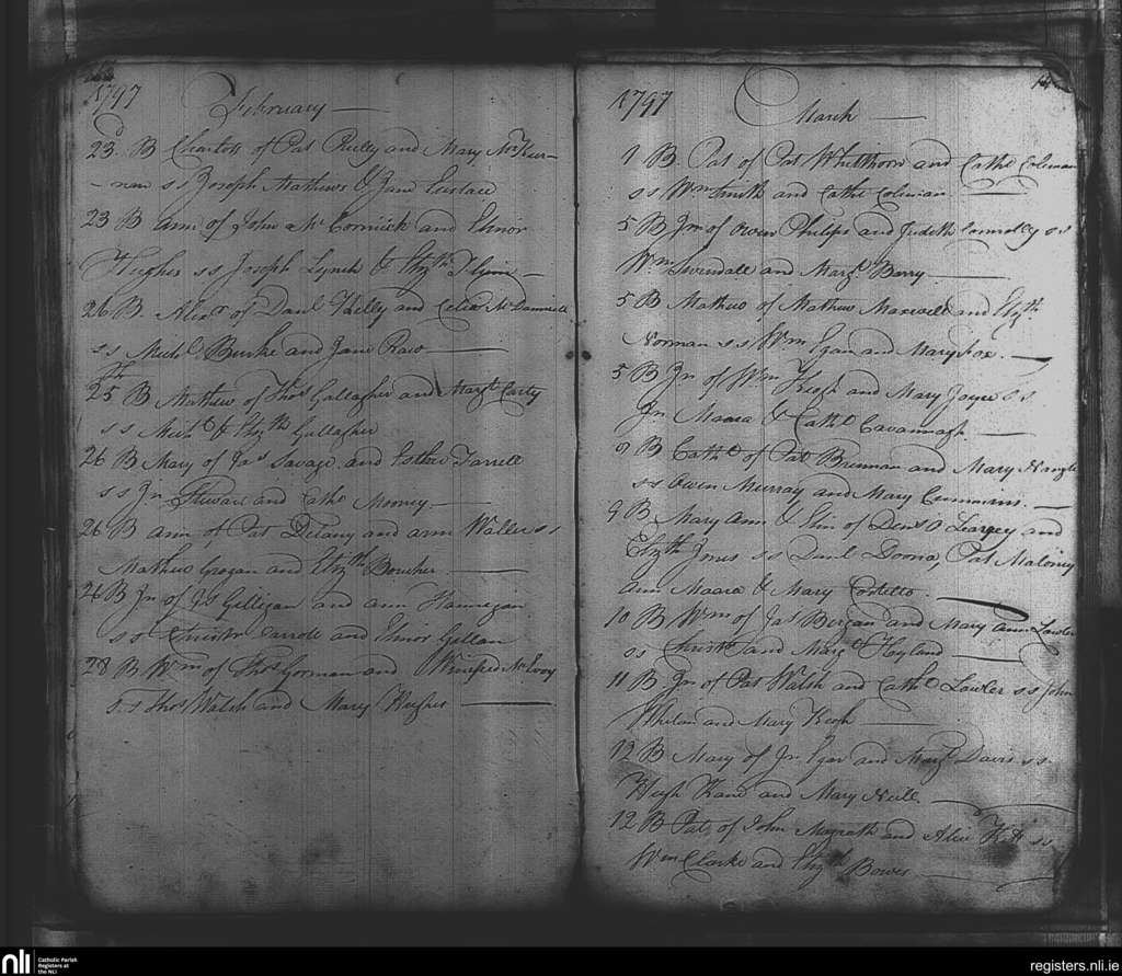 St. Michael and John's, Dublin city; County of Dublin; Archdiocese of Dublin. Baptisms, Feb. 1797 to Mar. 1797