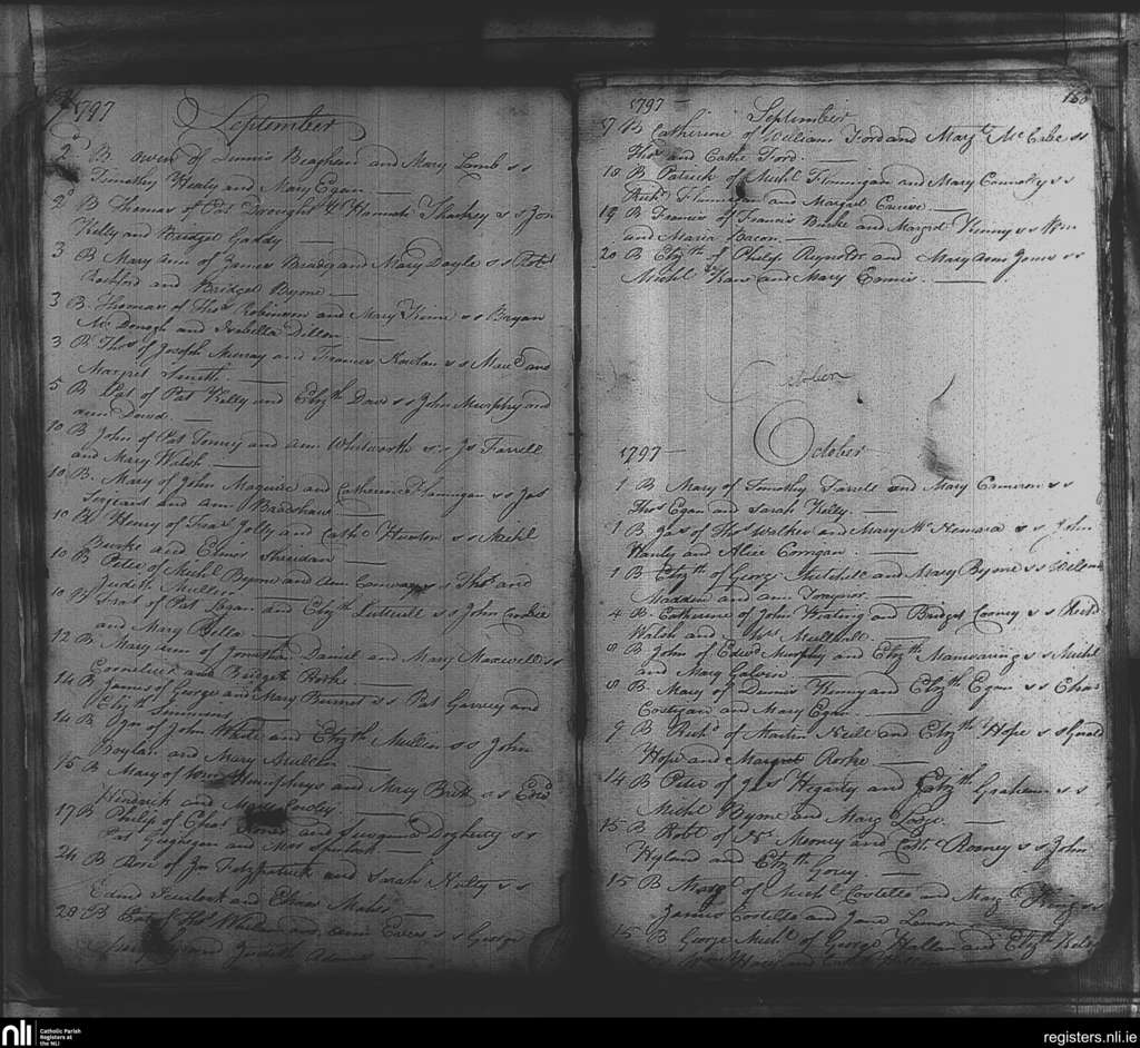 St. Michael and John's, Dublin city; County of Dublin; Archdiocese of Dublin. Baptisms, Sep. 1797 to Oct. 1797