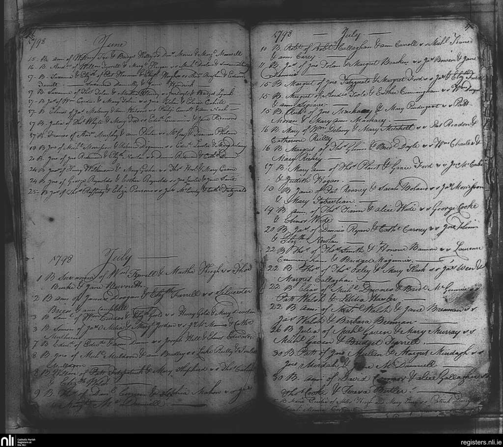 St. Michael and John's, Dublin city; County of Dublin; Archdiocese of Dublin. Baptisms, June 1798 to July 1798