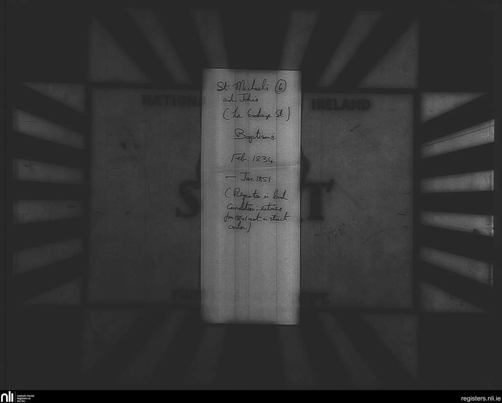 St. Michael and John's, Dublin city; County of Dublin; Archdiocese of Dublin. Baptisms