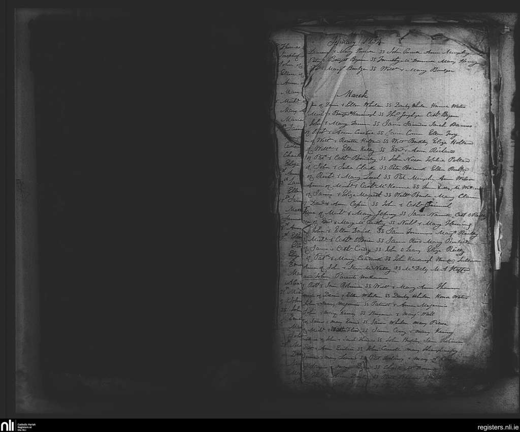 St. Michael and John's, Dublin city; County of Dublin; Archdiocese of Dublin. Baptisms, Feb. 1834 to Mar. 1834
