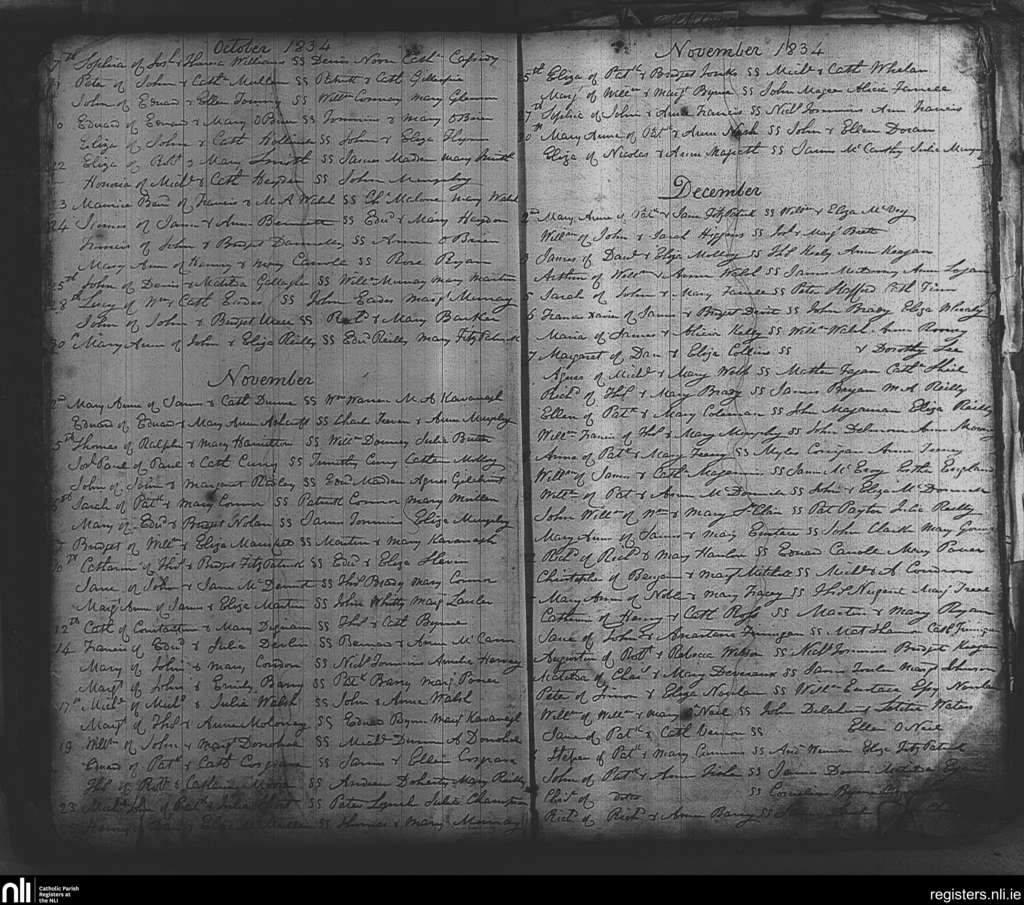 St. Michael and John's, Dublin city; County of Dublin; Archdiocese of Dublin. Baptisms, Oct. 1834 to Dec. 1834