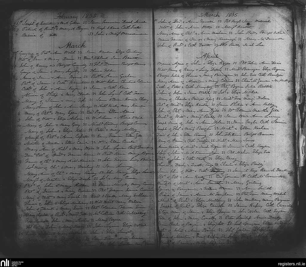 St. Michael and John's, Dublin city; County of Dublin; Archdiocese of Dublin. Baptisms, Feb. 1835 to Apr. 1835
