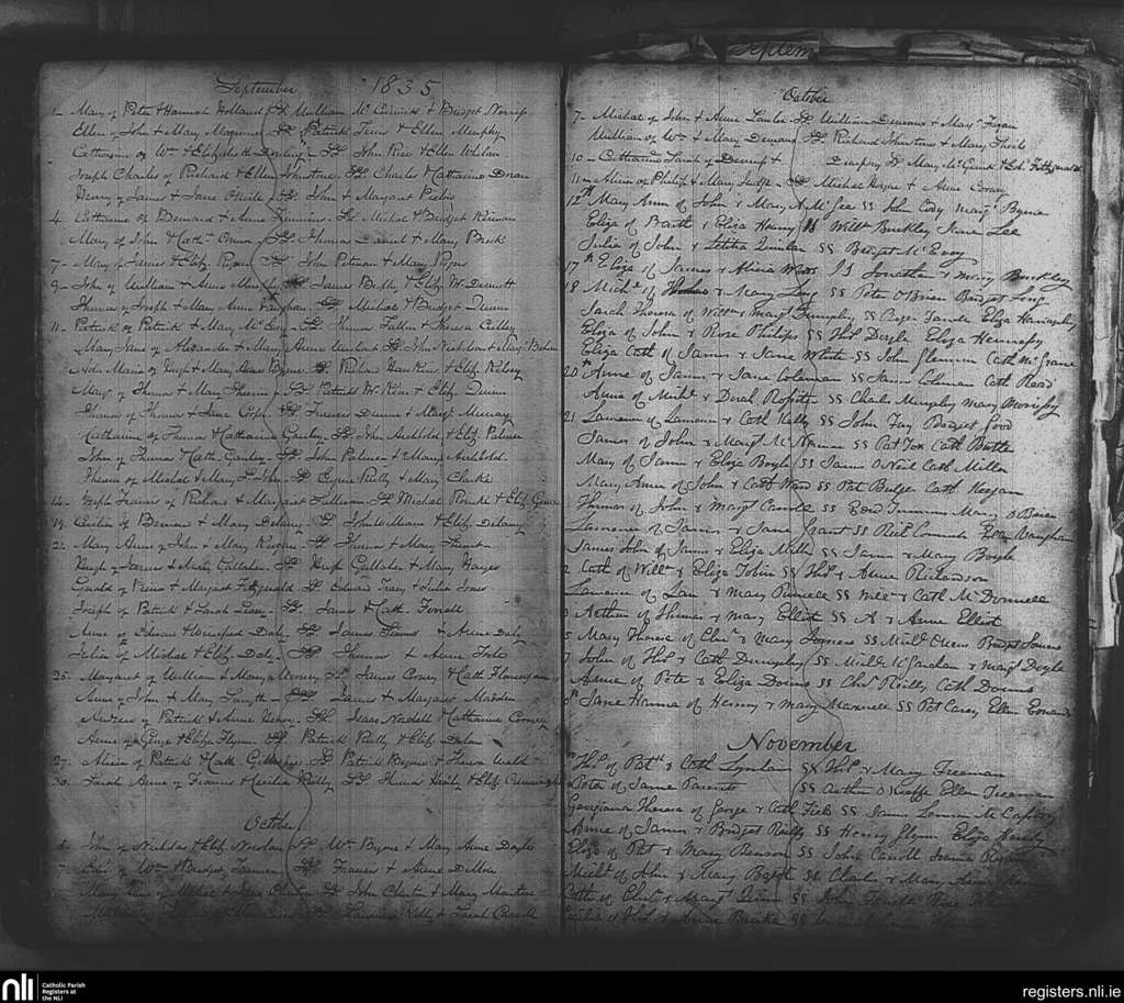 St. Michael and John's, Dublin city; County of Dublin; Archdiocese of Dublin. Baptisms, Sep. 1835 to Nov. 1835