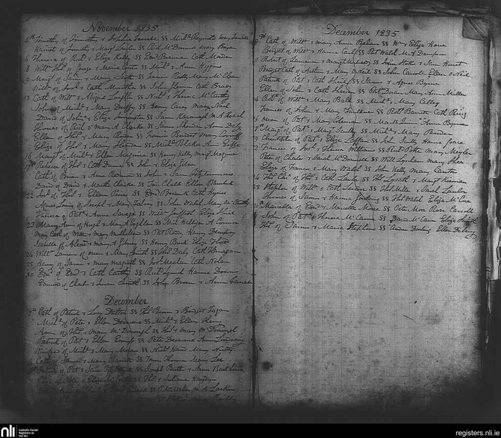St. Michael and John's, Dublin city; County of Dublin; Archdiocese of Dublin. Baptisms, Nov. 1835 to Dec. 1835