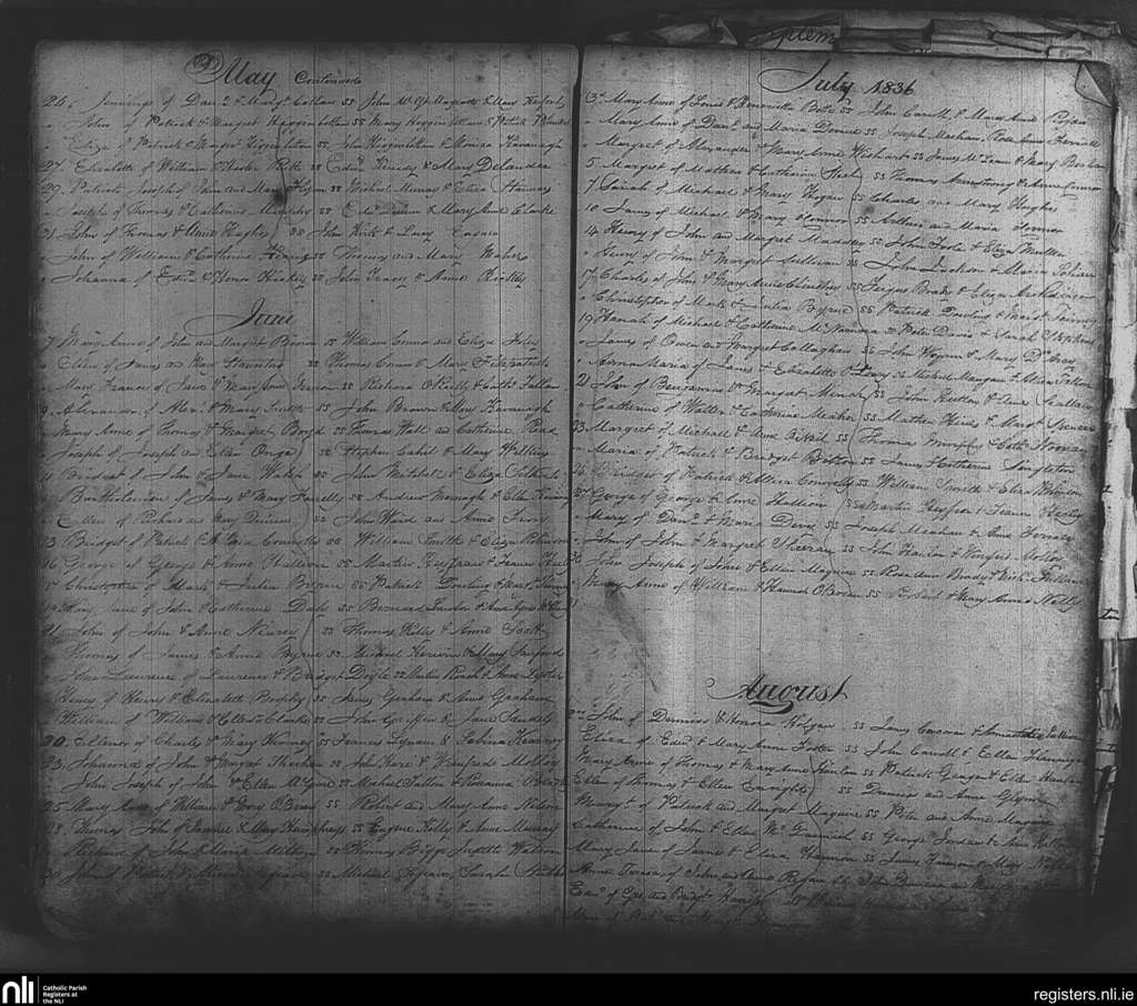 St. Michael and John's, Dublin city; County of Dublin; Archdiocese of Dublin. Baptisms, May 1836 to Aug. 1836