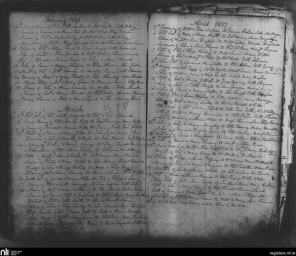 St. Michael and John's, Dublin city; County of Dublin; Archdiocese of Dublin. Baptisms, Feb. 1837 to Apr. 1837