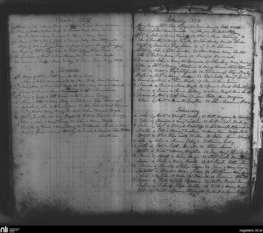 St. Michael and John's, Dublin city; County of Dublin; Archdiocese of Dublin. Baptisms, Nov. 1837 to Feb. 1838