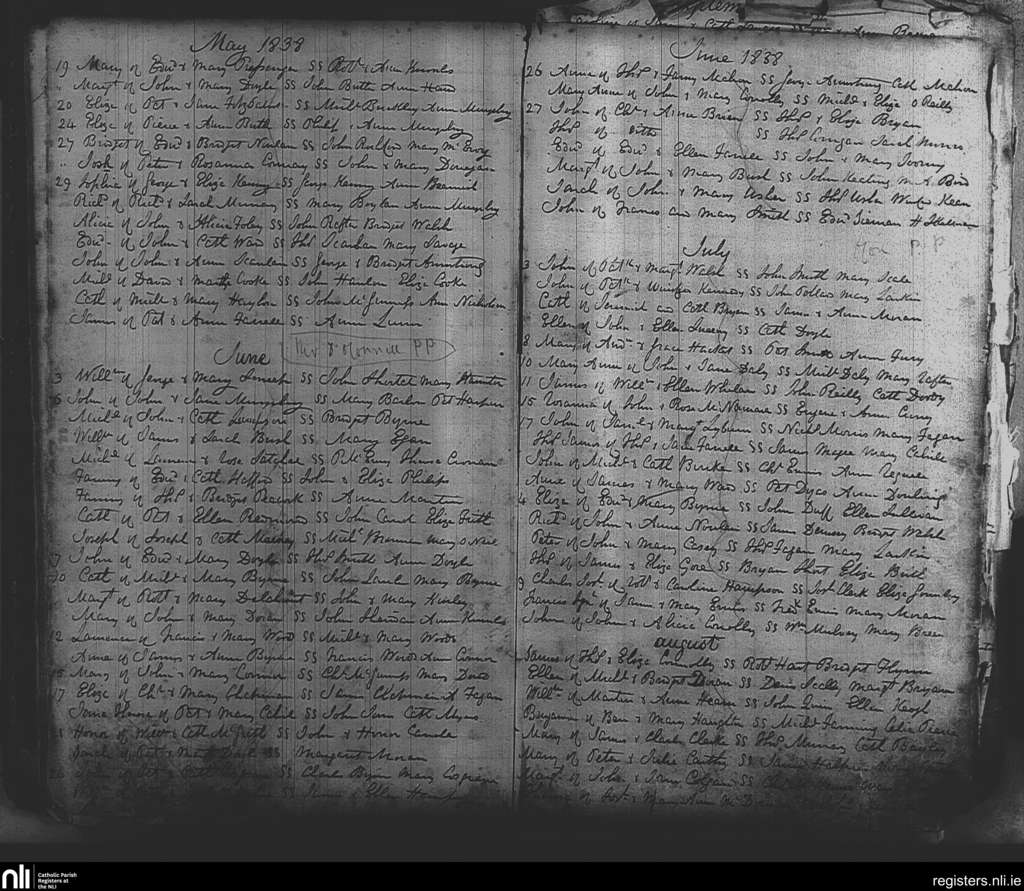 St. Michael and John's, Dublin city; County of Dublin; Archdiocese of Dublin. Baptisms, May 1838 to Aug. 1838