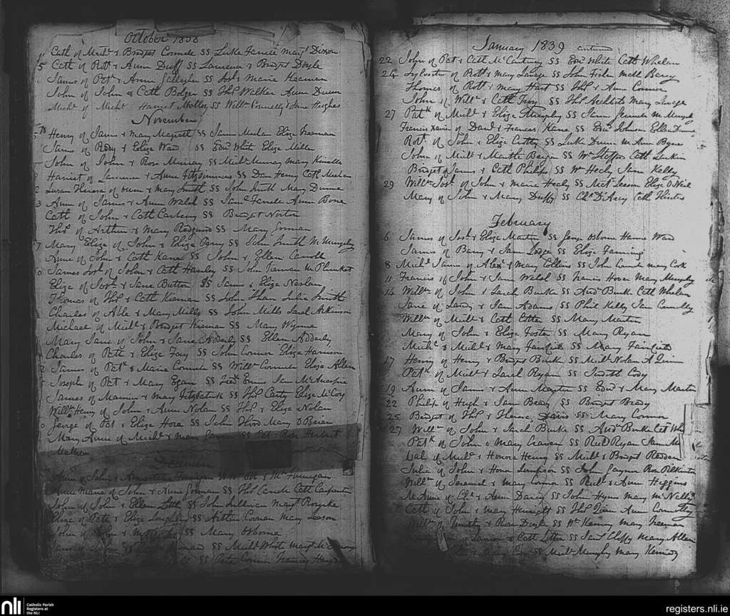 St. Michael and John's, Dublin city; County of Dublin; Archdiocese of Dublin. Baptisms, Oct. 1838 to Feb. 1839