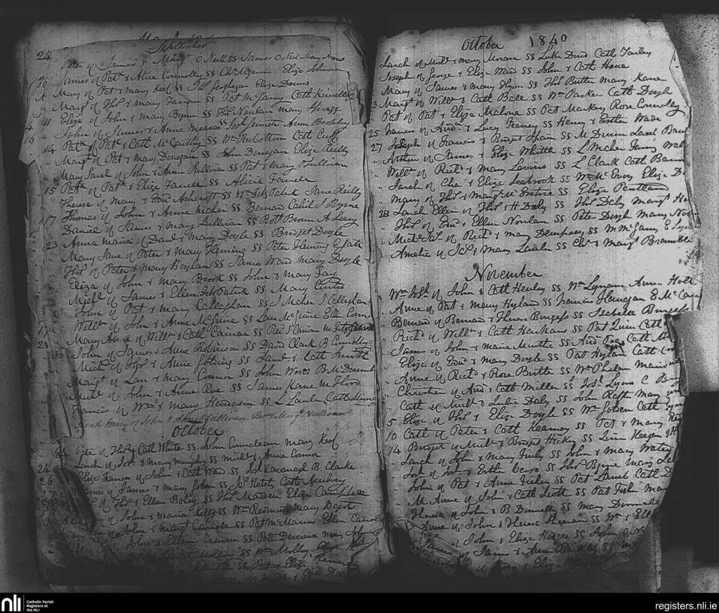 St. Michael and John's, Dublin city; County of Dublin; Archdiocese of Dublin. Baptisms, Sep. 1840 to Nov. 1840