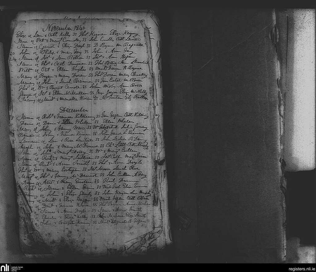 St. Michael and John's, Dublin city; County of Dublin; Archdiocese of Dublin. Baptisms, Nov. 1840 to Dec. 1840