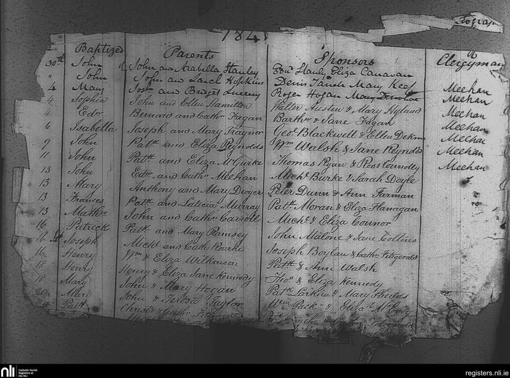 St. Michael and John's, Dublin city; County of Dublin; Archdiocese of Dublin. Baptisms, Jan. 1841