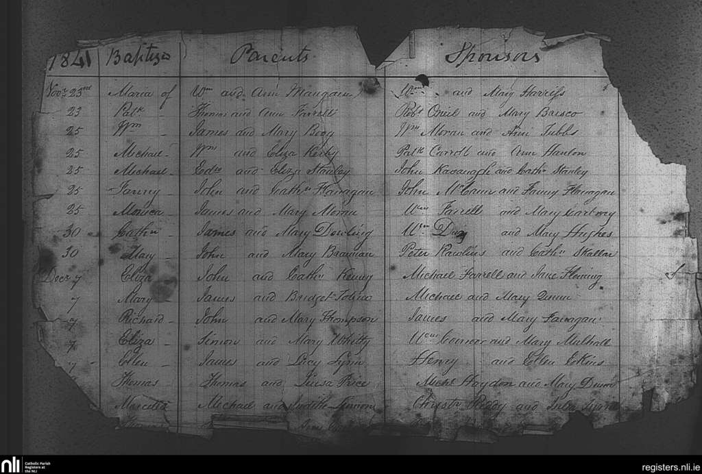 St. Michael and John's, Dublin city; County of Dublin; Archdiocese of Dublin. Baptisms, Nov. 1841 to Dec. 1841
