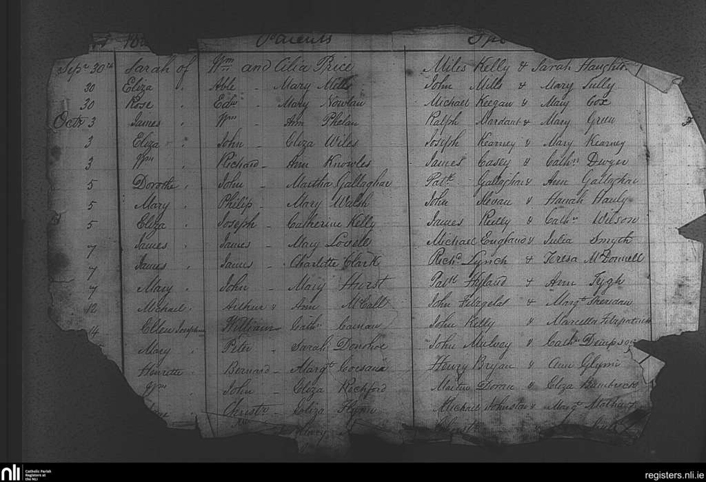 St. Michael and John's, Dublin city; County of Dublin; Archdiocese of Dublin. Baptisms, Sep. 1841 to Oct. 1841