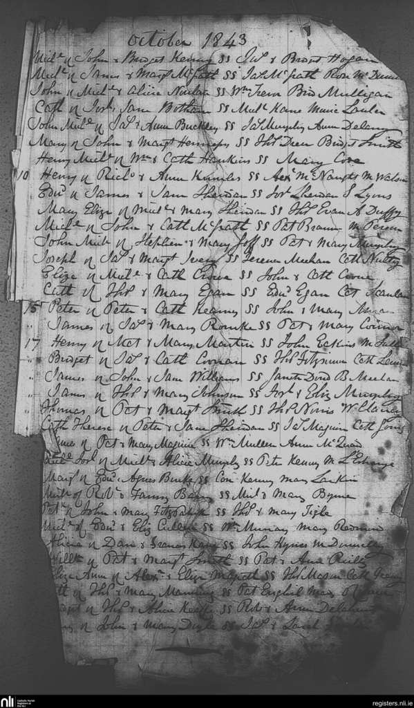 St. Michael and John's, Dublin city; County of Dublin; Archdiocese of Dublin. Baptisms, Oct. 1843