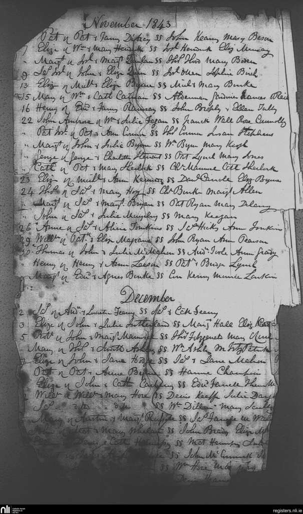 St. Michael and John's, Dublin city; County of Dublin; Archdiocese of Dublin. Baptisms, Nov. 1843 to Dec. 1843