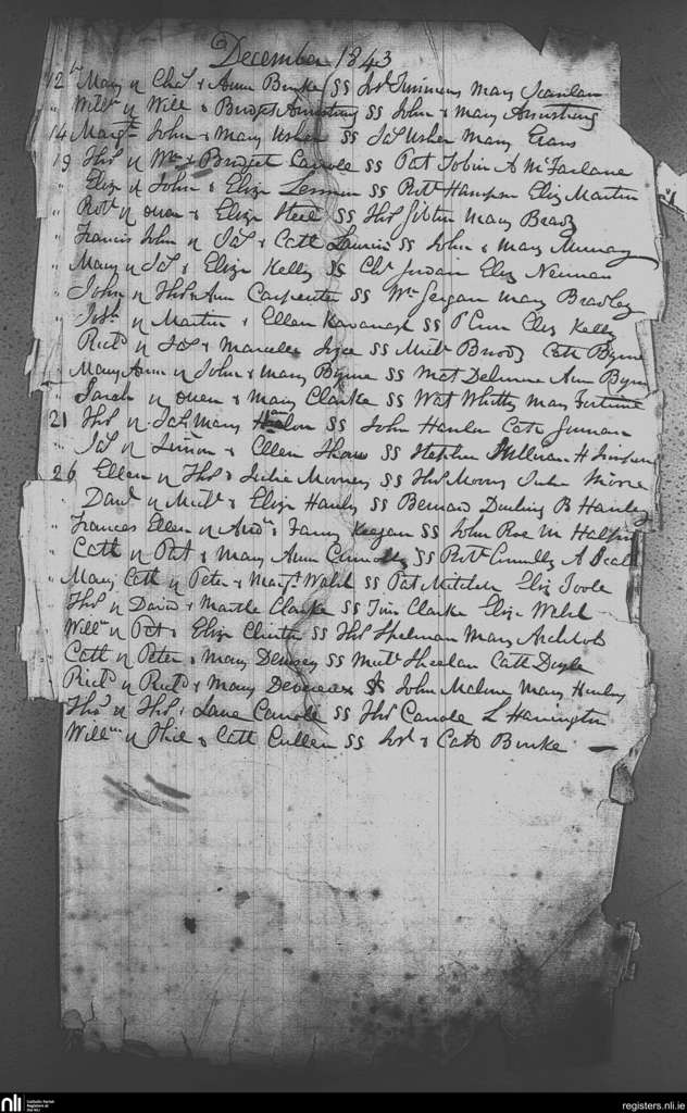 St. Michael and John's, Dublin city; County of Dublin; Archdiocese of Dublin. Baptisms, Dec. 1843