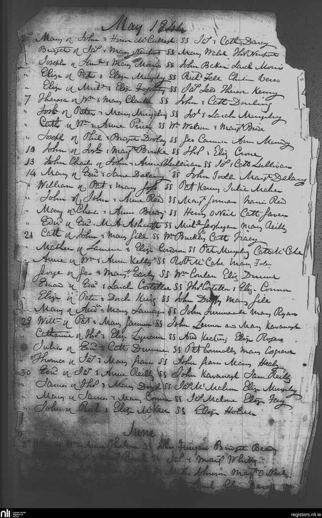 St. Michael and John's, Dublin city; County of Dublin; Archdiocese of Dublin. Baptisms, May 1844 to June 1844