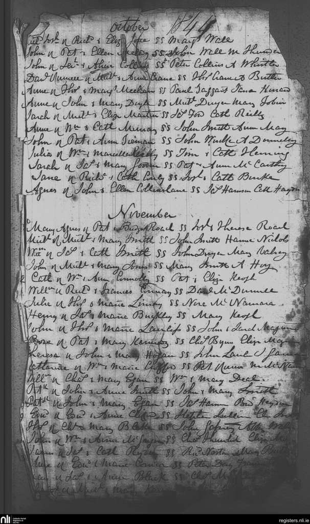 St. Michael and John's, Dublin city; County of Dublin; Archdiocese of Dublin. Baptisms, Oct. 1844 to Nov. 1844
