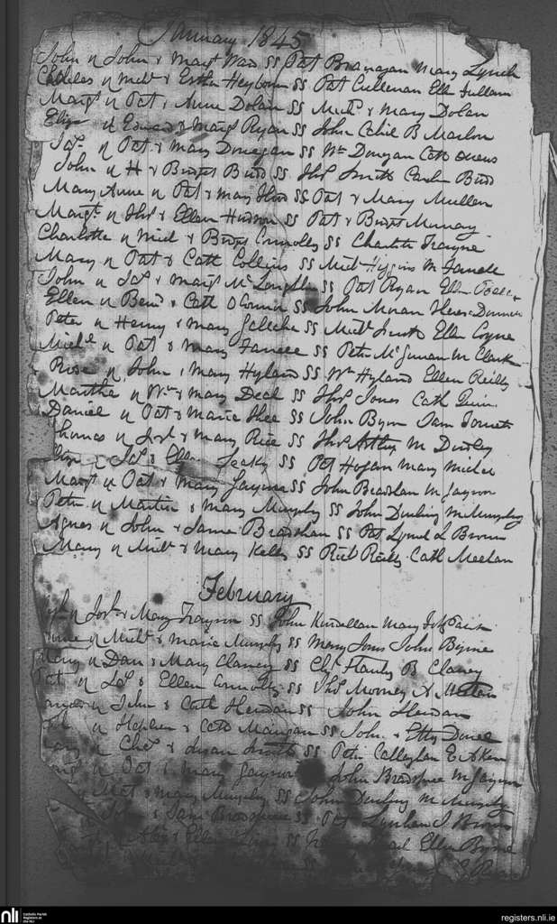 St. Michael and John's, Dublin city; County of Dublin; Archdiocese of Dublin. Baptisms, Jan. 1845 to Feb. 1845