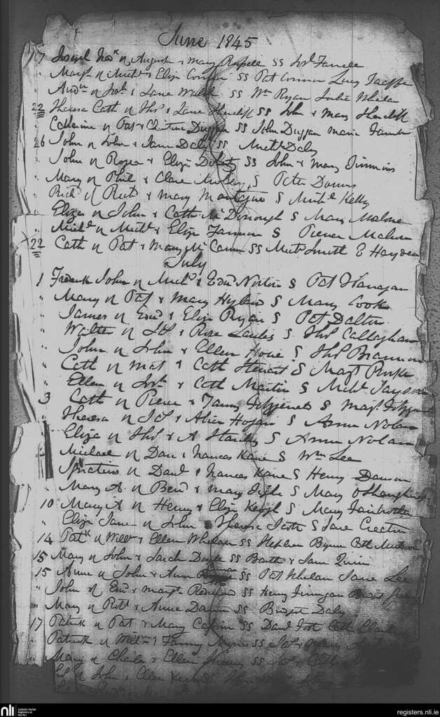 St. Michael and John's, Dublin city; County of Dublin; Archdiocese of Dublin. Baptisms, June 1845 to July 1845
