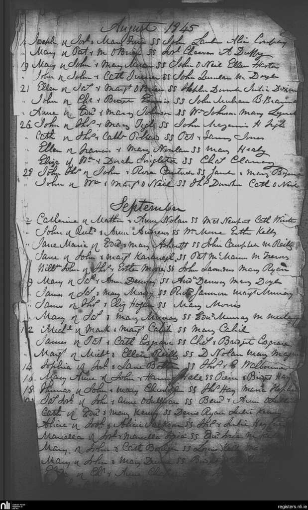 St. Michael and John's, Dublin city; County of Dublin; Archdiocese of Dublin. Baptisms, Aug. 1845 to Sep. 1845