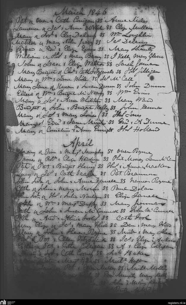 St. Michael and John's, Dublin city; County of Dublin; Archdiocese of Dublin. Baptisms, Mar. 1846 to Apr. 1846