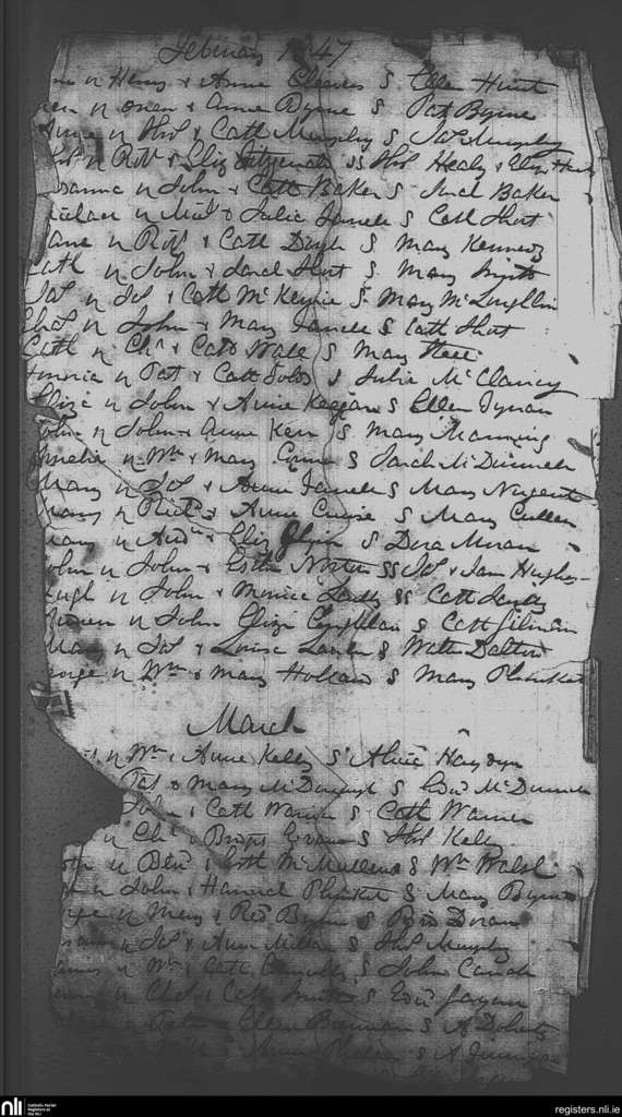 St. Michael and John's, Dublin city; County of Dublin; Archdiocese of Dublin. Baptisms, Feb. 1847 to Mar. 1847