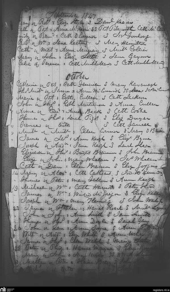 St. Michael and John's, Dublin city; County of Dublin; Archdiocese of Dublin. Baptisms, Sep. 1847 to Oct. 1847