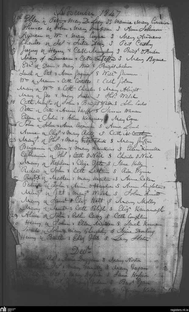 St. Michael and John's, Dublin city; County of Dublin; Archdiocese of Dublin. Baptisms, Nov. 1847 to Dec. 1847