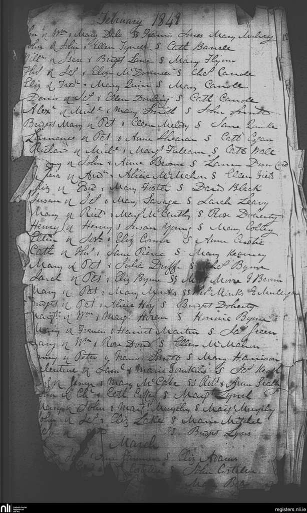 St. Michael and John's, Dublin city; County of Dublin; Archdiocese of Dublin. Baptisms, Feb. 1848 to Mar. 1848
