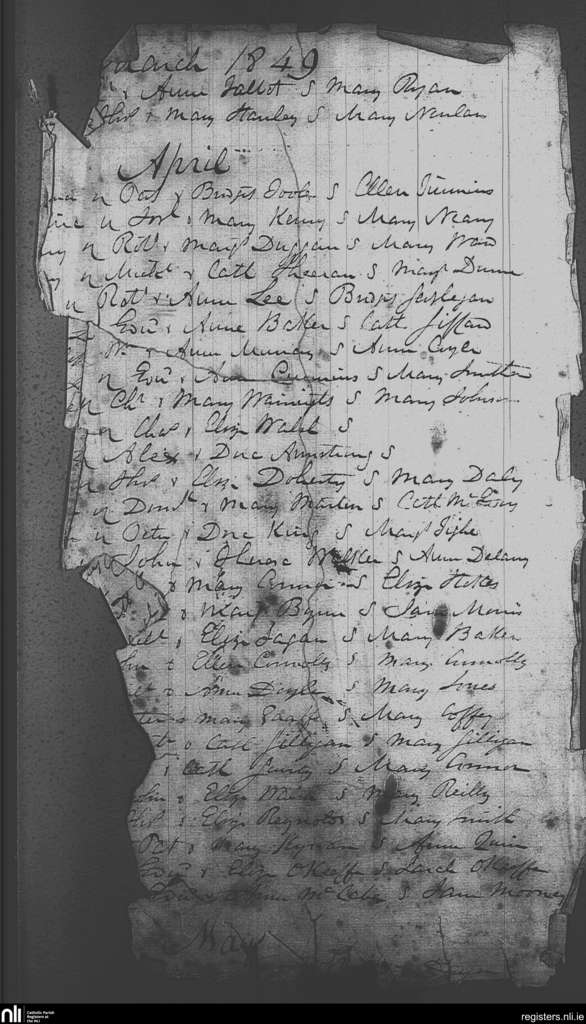 St. Michael and John's, Dublin city; County of Dublin; Archdiocese of Dublin. Baptisms, Mar. 1849 to Apr. 1849