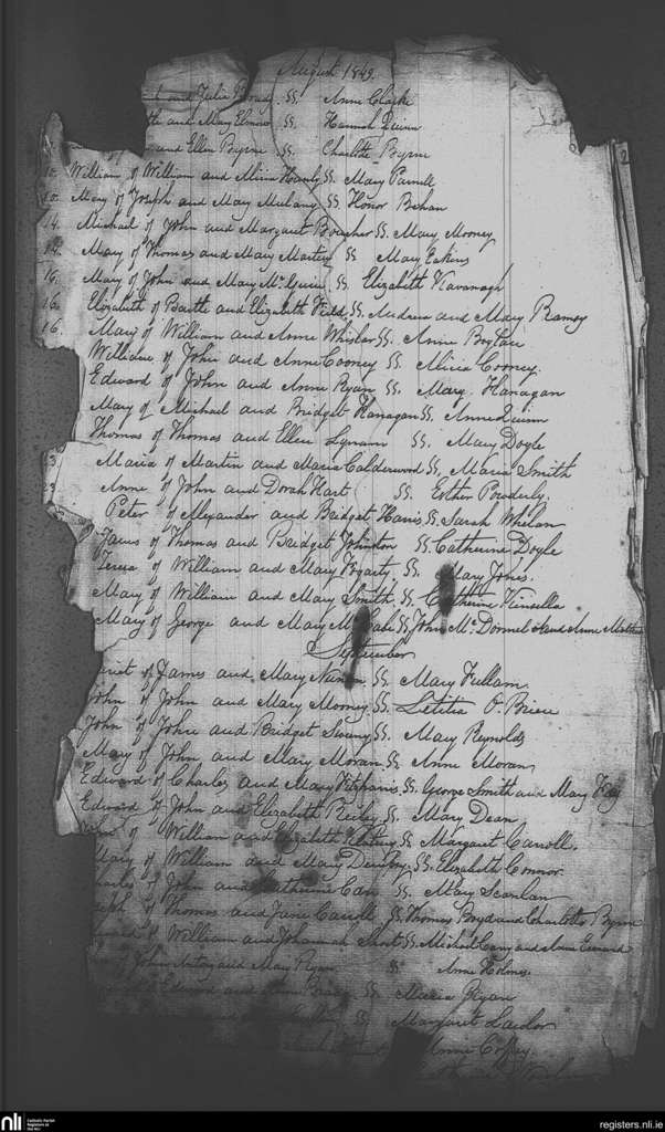 St. Michael and John's, Dublin city; County of Dublin; Archdiocese of Dublin. Baptisms, Aug. 1849 to Sep. 1849